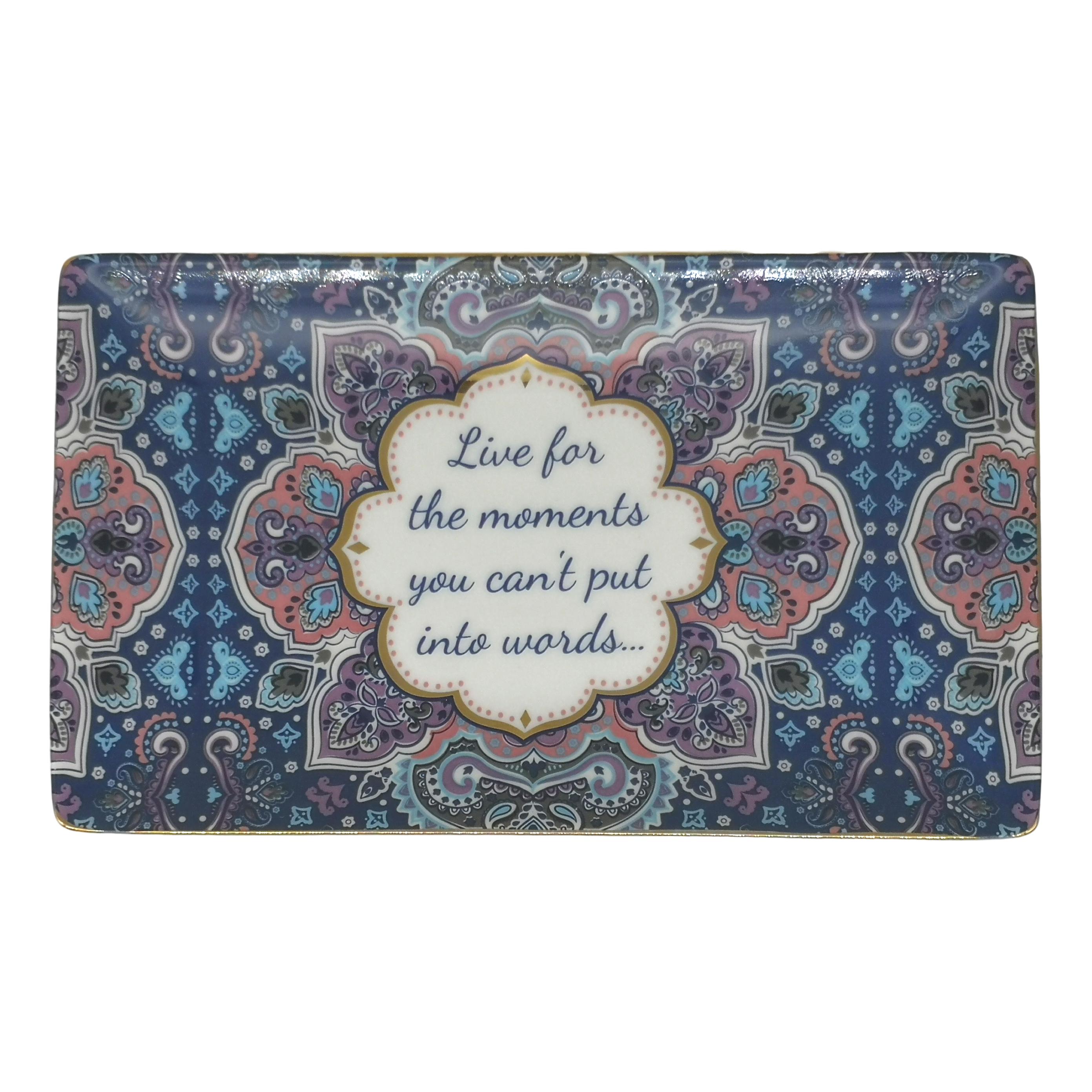 A beautiful new bone china trinket tray embellished with the inspirational wording “Live for the moments you can’t put into words…”.