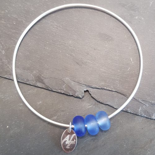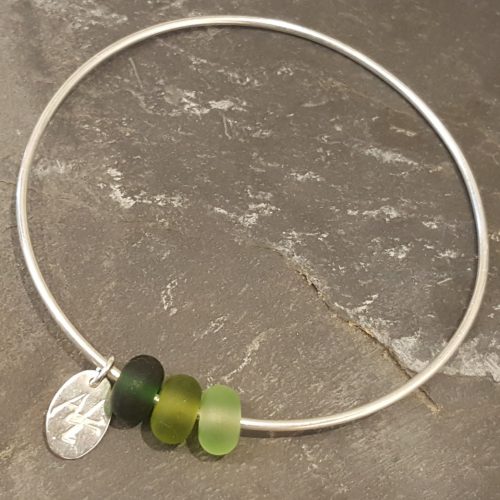 The handmade beads are approximately 7mm in diameter. The silver bangle is 1.5mm diameter wire. The small bangle measures 60mm across, the medium is 65mm and the large 70mm. To determine your size clench your fist and measure from the middle of your forefinger knuckle to the middle of your little finger knuckle. If you would like a different size just let me know and I’ll make one for you. Each bead is individually hand made so will vary slightly from the images.