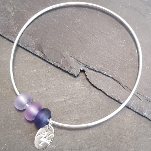The Gradient Collection utilises the many different shades of glass to create subtle graduations within colour families. The Trio Bangles feature three little handmade, frosted glass beads which move freely around a simple, round, sterling silver bangle. Each bangle is finished with a sterling silver tag bearing the ALT logo and hallmark. Wear them singly or as part of a stack.