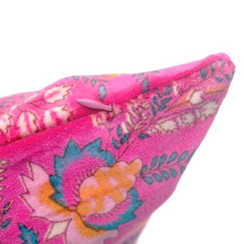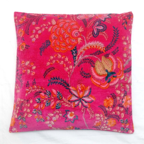 Soft velvet cushion cover with tropical bird print.
