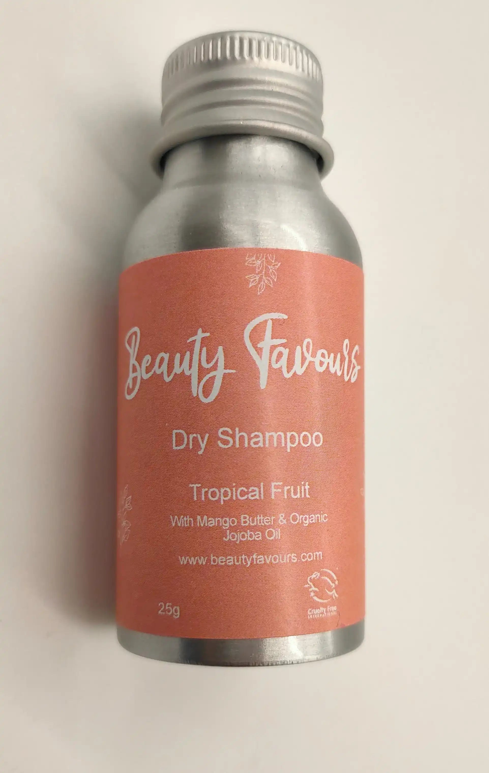 Beauty Favours invisible dry powder shampoo blends seamlessly into the hair leaving it looking and feeling refreshed with a gorgeous fruity fresh fragrance. Perfect for on the go, this lightweight dry shampoo is perfect for travelling with or popping into a handbag for a quick refresh when needed. This dry shampoo contains moisturising Mango butter and soothing jojoba oil for added scalp care. Extend the time between washes too. This cruelty free, vegan and eco friendly product makes a lovely gift and matches perfectly with our giftable luxury Tropical Fruit Shampoo Bar with Mango butter and Jojoba oil for a complete set. Our dry shampoo is poured from the bottle and does not use aerosol. Features Rice starch – A highly absorbent powder which helps add volume to hair and is suitable for sensitive skin Kaolin clay – known for absorbing excess oils Pro-Vitamin B5 helps to improve the texture of damaged hair Moisturising Mango butter Soothing organic Jojoba oil Powders that blend seamlessly into the hair without leaving a residue Eco friendly, loose powder with no aerosol Benefits Fits easily into a hand bag Travel friendly No aerosol Highly absorbent Leaves hair feeling fresh on the go Little amount goes a long way Zero waste