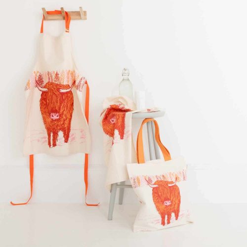 There are 2 different designs on either side of the bag. Made in UK from unbleached canvas, the bag measures 38cm x 43cm. The over-the-shoulders handles measure 37cm and are printed in bright orange. It comes with a branded woven label and a barcoded swing ticket – both having the ‘Made in UK’ statement clearly marked.This bag is machine washable at 40°C.