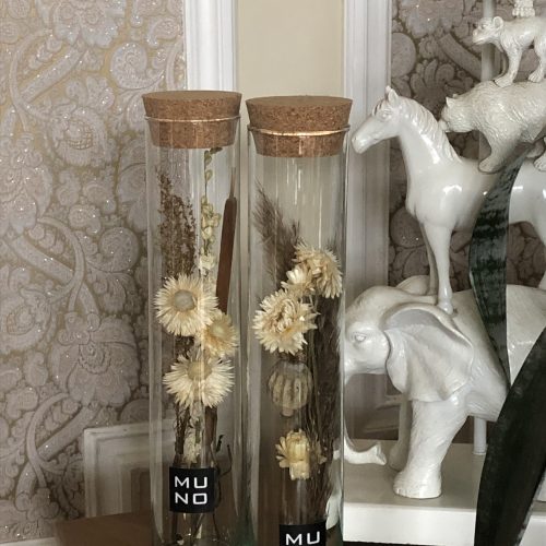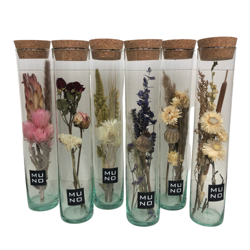 Glass tube with a mini bouquet of dried flowers