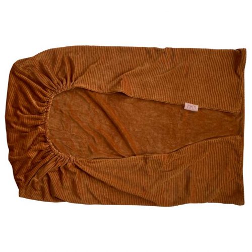 The baby blanket is made of a very soft cotton rib velours. The reverse side of a plain velours fabric. Because of its beautiful finishing, it can be used on both sides, which are in the same hazel brown colour.