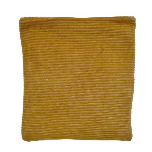 The baby blanket is made of a soft cotton rib velvet. The reverse side of a plain velvet. Because of its beautiful finishing it can be used on both sides, which have the same ochre colour.