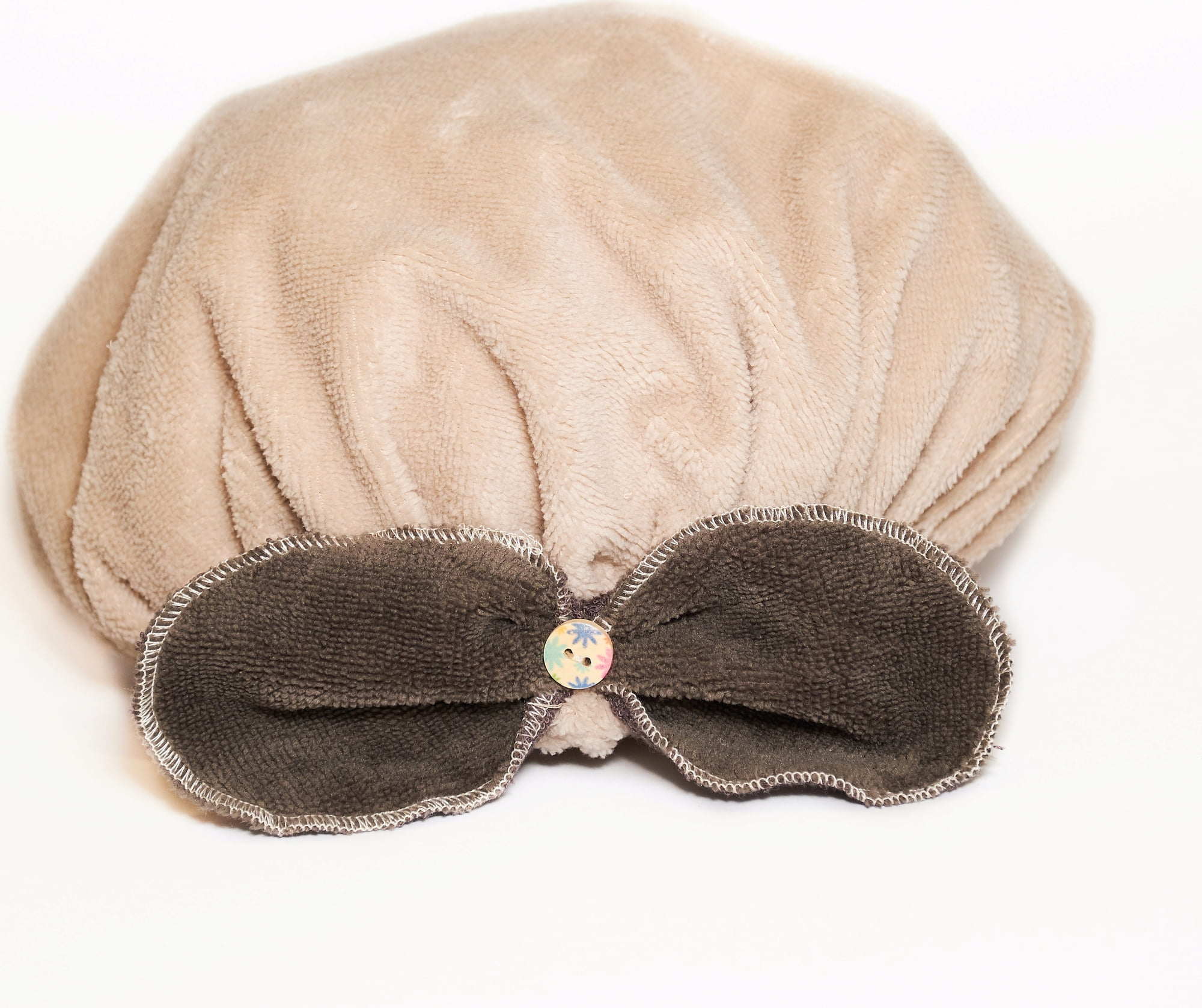 The turban bonnet is made using mix fabrics that dry the hair in a natural way and reduces static. It is made up of 40% bamboo. 40% polyester and 20% cotton making it soft to the touch and comfortable to wear. The bonnet is handmade in Sardinia.