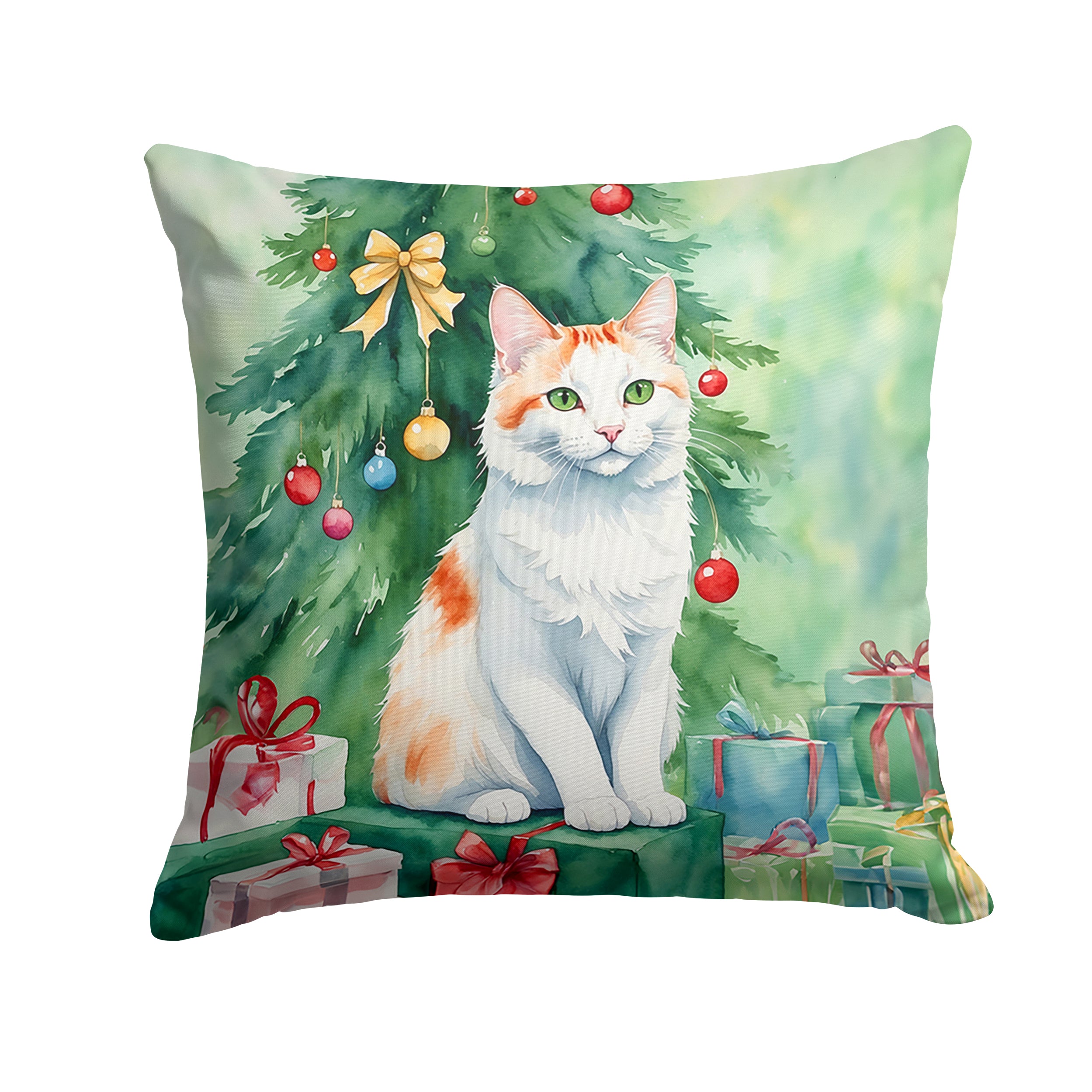 Throw Pillow featuring breed specific Turkish Van artwork. Celebrate Christmas with this Christmas Pillow. Add a touch of vibrancy and comfort to your outdoor seating with Caroline’s Treasures Fabric Decorative Pillow. Measuring approximately 14 inches by 14 inches, this outdoor pillow is crafted to elevate the appeal of your patio furniture, infusing it with vivid color and artistic flair. The pillow includes a 100% Polyester Fabric sham filled with a quality pillow form to provide superior comfort. Innovatively made from our brand new material, specifically woven for its water resistance, this pillow is designed for durability. The soft canvas fabric offers versatility in use, fit for your indoor couch or your outdoor patio, porch, or veranda. The fabric is dyed with colorfast dyes built for resilience against weather conditions, ensuring the pillow retains its beauty over time. Constructed by sewing three fabric pieces to create a sham, the polyester insert is then nestled inside to form the pillow, resulting in an overstuffed pillow that maintains its shape. Both the sham and the pillow insert are proudly made in the United States. As the pillows are handcrafted, there may be minor variations in size, further enhancing their unique charm. Experience comfort in style with Caroline’s Treasures Fabric Decorative Pillow.