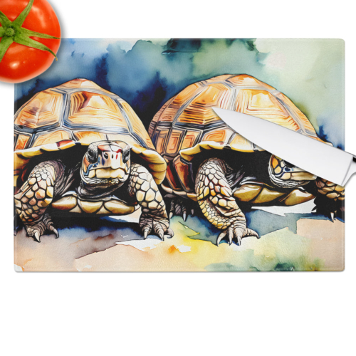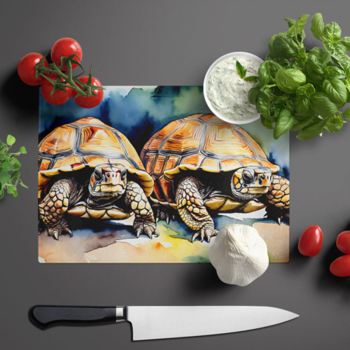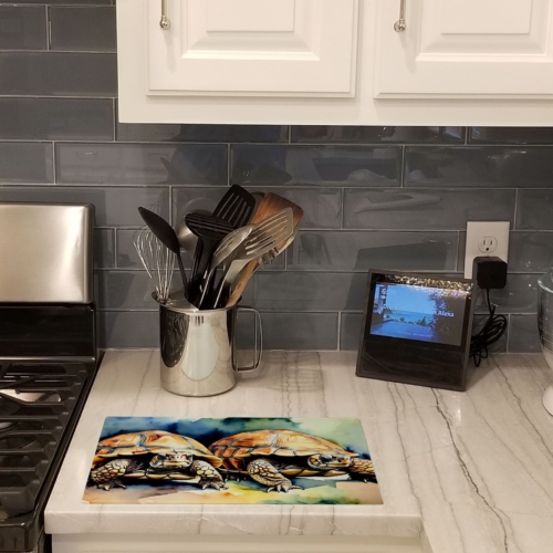 Glass Cutting Board featuring breed specific Tortoises artwork. Introduce your kitchen to the vibrant, large Decorative Glass Cutting Board from Caroline’s Treasures. Crafted from resilient tempered glass, this board is not only a utilitarian necessity but also a colorful art piece. With its generous dimensions of 15 inches in height and 12 inches in length, it offers ample space for all your cutting needs. Every piece showcases captivating artwork from distinguished artists, bringing an aesthetic edge to your kitchen. Beyond its attractive design, this cutting board ensures your countertop stays pristine and unscathed, owing to its heat-resistant properties. Engineered with user convenience in mind, it features non-skid feet for stability, and rounded corners for additional safety. Its robust construction renders it virtually unbreakable, guaranteeing longevity. The board comes with protective feet bumpers, maintaining its position during use. This product is recommended to be hand washed only. Proudly printed and assembled in the United States, this cutting board exemplifies superior craftsmanship. With Caroline’s Treasures’ Decorative Glass Cutting Board, you’re investing in a blend of functionality and artistic flair.