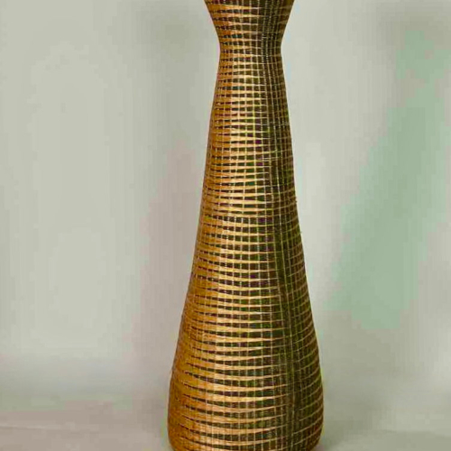 Made from from vegetable fibers by the Tutsi women. The grasses of these trees were soaked in the water for roughly two weeks until the fibers become pliable. What really sets these baskets apart from the rest is their very intricate weaving patterns, their use of very fine woven material and the extraordinarily tight weave. The range of patterns is quite diverse which shows the innovation of the highly skilled women of Rwanda who make them. This basket measures 23 1/2 x 7 1/2″ (60 x 19 cm)