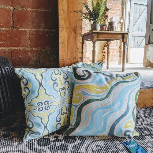 With different patterns on the front and back from the Summer River collection, this cushion set gives you a different look depending on which way round you place the cushions. Our Summer River design can be applied to fabrics, accessories and wall coverings.