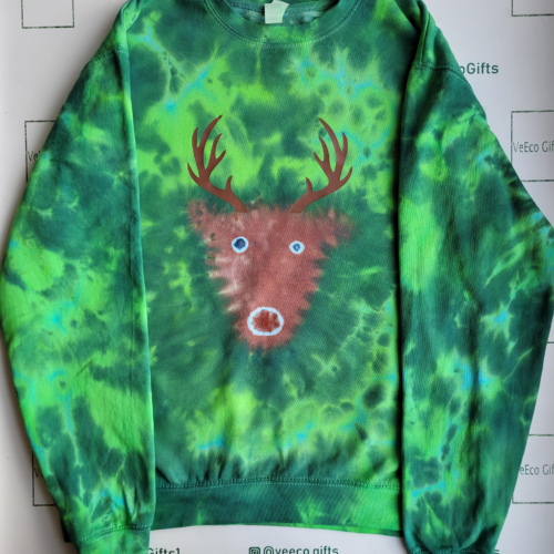 Tie dye Christmas Reindeer sweatshirt, perfect to wear over the festive period.