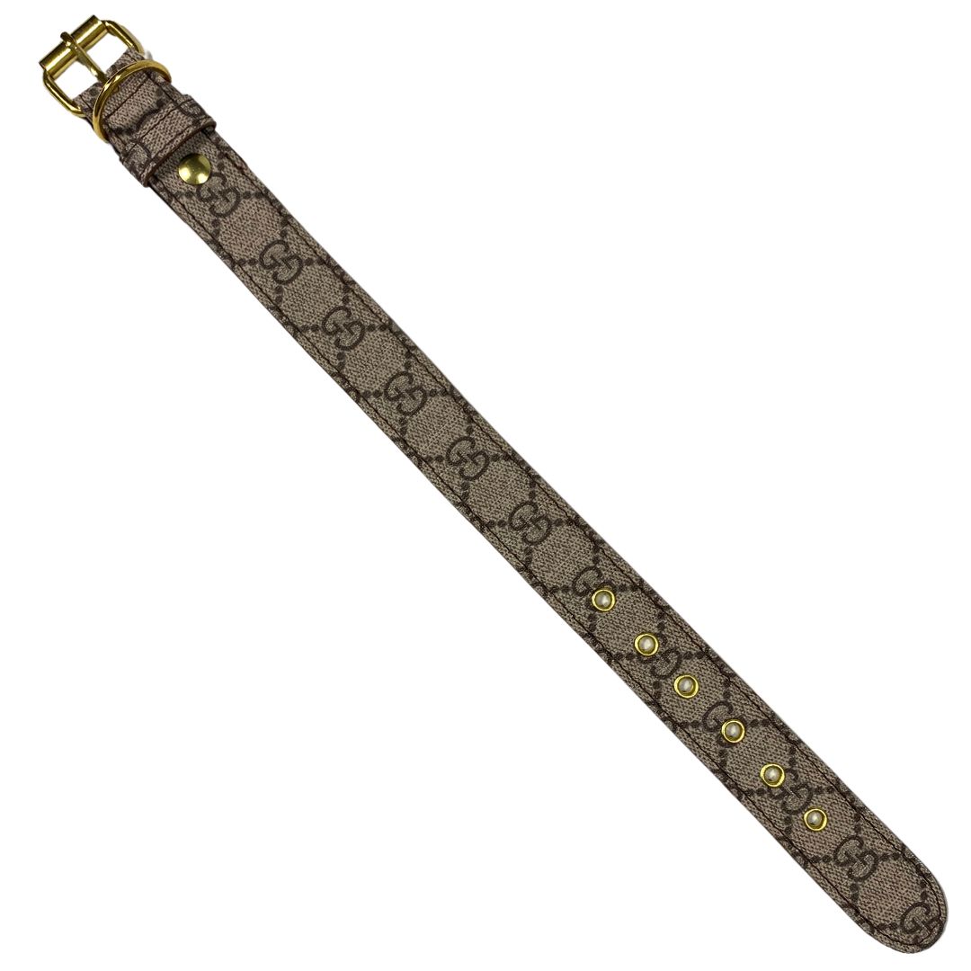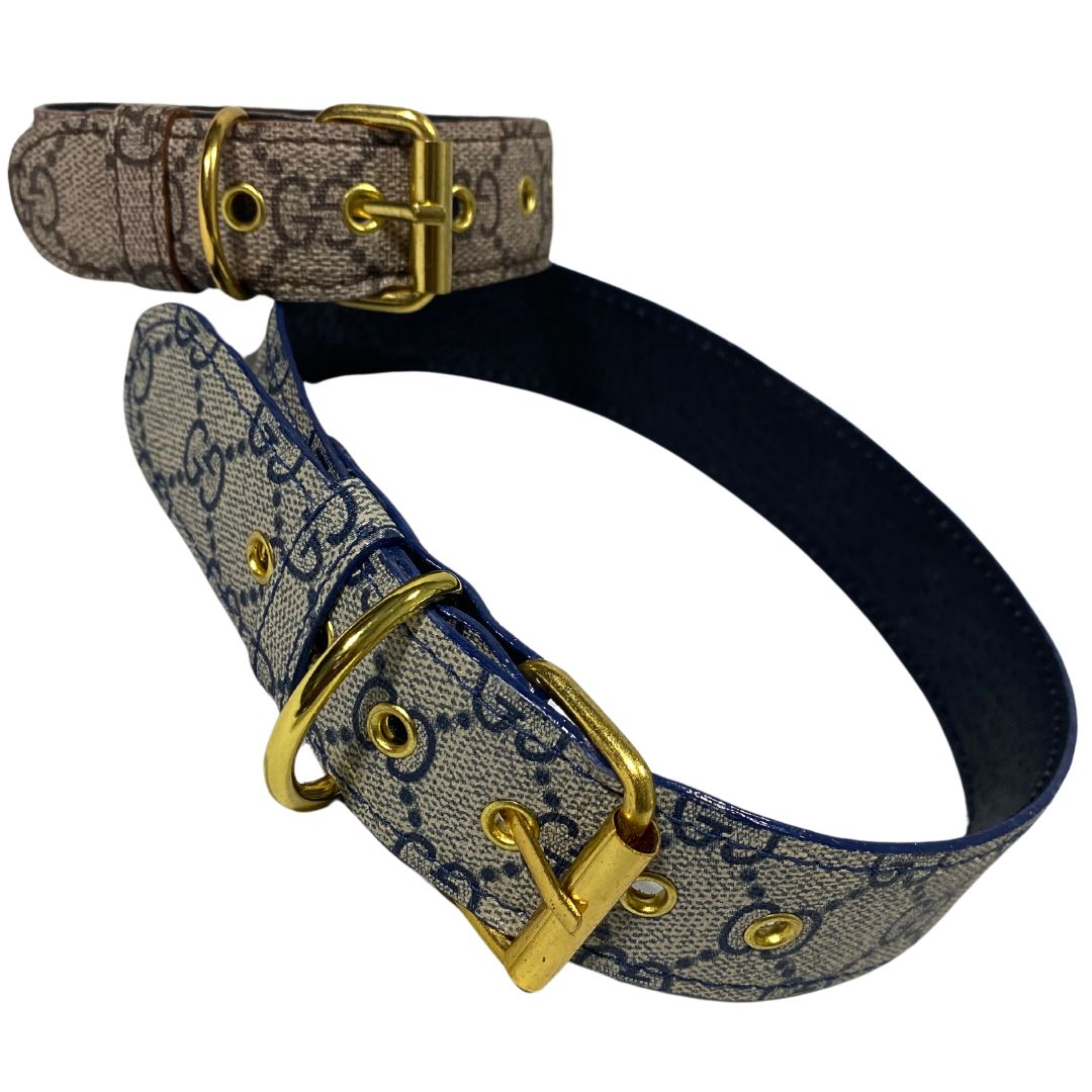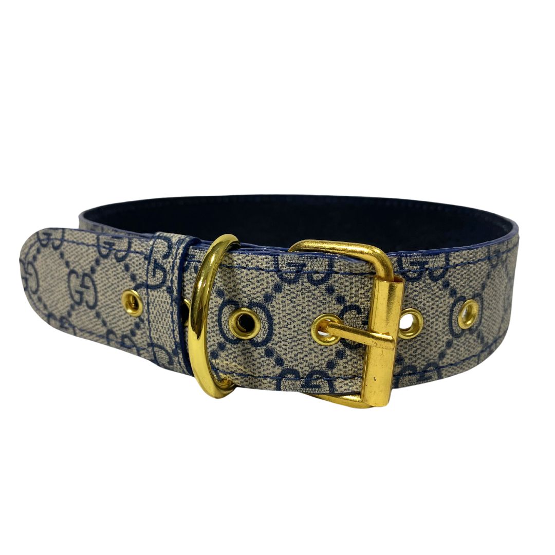 Upcycled GG / LV / MCM Dog Collars Straps are handcrafted bands constructed with upcycled and repurposed materials. Purchase comes with GOLD hardware.