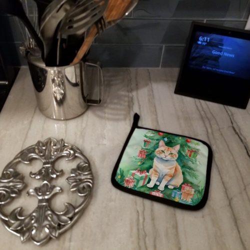 Pair of Pot Holders featuring breed specific Ural Rex artwork. Celebrate Christmas with this Christmas Pair of Pot Holders. A Pair of Pot Holders to match your kitchen decor. Made in the USA these are thick and functional. Full color artwork decorates the front polyester fabric of the hot pad and accented by a black trim. Use these at as a trivet for your Thanksgiving or Christmas tablescape. Filled with insulated fabric and quilted for durability. These colorful pot holders will make a great gift for your favorite home cook or executive chef. Each pot holder measures approximately 7 1/2 inches by 7 1/2 inches. A hanging tab is included.