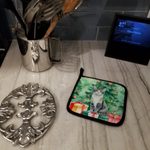 Pair of Pot Holders featuring breed specific Ural Rex artwork. Celebrate Christmas with this Christmas Pair of Pot Holders. A Pair of Pot Holders to match your kitchen decor. Made in the USA these are thick and functional. Full color artwork decorates the front polyester fabric of the hot pad and accented by a black trim. Use these at as a trivet for your Thanksgiving or Christmas tablescape. Filled with insulated fabric and quilted for durability. These colorful pot holders will make a great gift for your favorite home cook or executive chef. Each pot holder measures approximately 7 1/2 inches by 7 1/2 inches. A hanging tab is included.