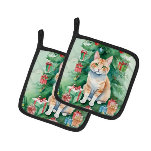 Pair of Pot Holders featuring breed specific Ural Rex artwork. Celebrate Christmas with this Christmas Pair of Pot Holders. A Pair of Pot Holders to match your kitchen decor. Made in the USA these are thick and functional. Full color artwork decorates the front polyester fabric of the hot pad and accented by a black trim. Use these at as a trivet for your Thanksgiving or Christmas tablescape. Filled with insulated fabric and quilted for durability. These colorful pot holders will make a great gift for your favorite home cook or executive chef. Each pot holder measures approximately 7 1/2 inches by 7 1/2 inches. A hanging tab is included.