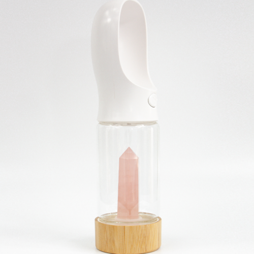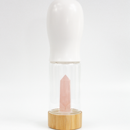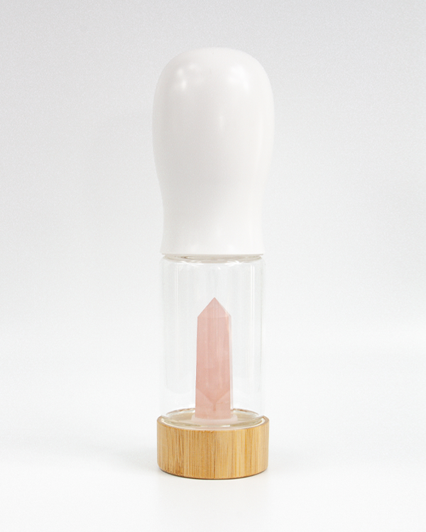 At the center of this finely crafted bottle lies the Rose Quartz. Known to crystal enthusiasts as the crystal of compassion, tranquility, and unconditional love.