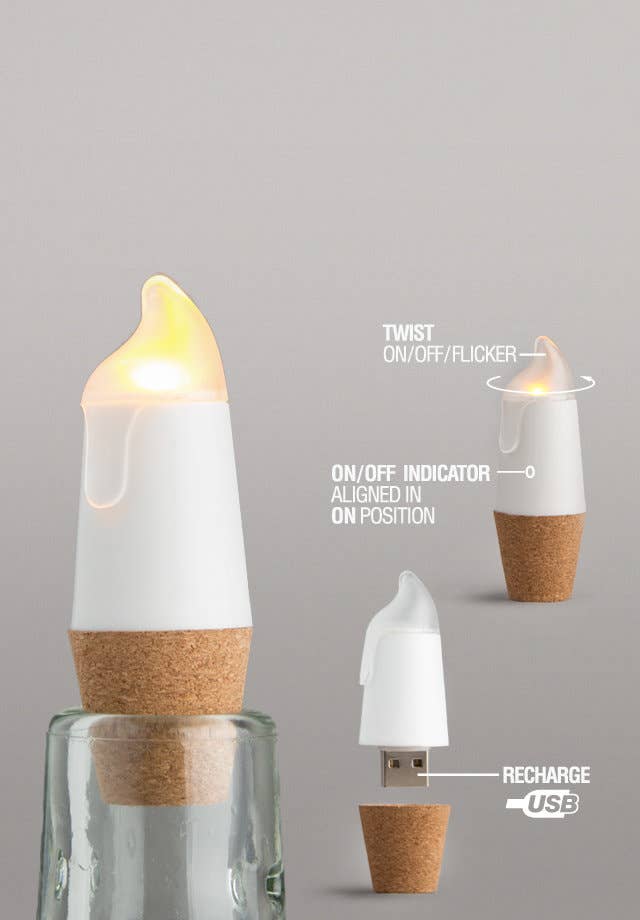 High-quality Candle bottle light that fits almost any bottle. Recharges via USB outlet in 1 hour and lights for 3 hours once charged. Simply twist the top section to turn on the glowing light and enjoy!Makes a cute table decoration both in or outdoors, no plug sockets necessary.Add to special wine or gin bottles to create a unique and eye-catching nightlight.A safe alternative to candles, create atmosphere without a hazard.Dress your table for a wedding or party and watch your event glow!