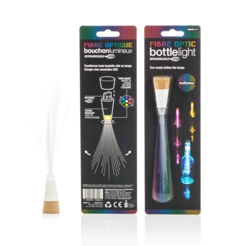 The original, high-quality cork shaped, multi colored fiber optic light that fits almost any bottle.Recharges using any USB outlet in one hour and gives light for three hours once fully charged.Simply twist the light section of the cork-shape to turn on the beautiful glowing light and enjoy!Alternate between 6 colors.Makes a cute table decoration both in and outdoors, no plug sockets necessary!Dress your table for a wedding, dinner party, festival or carnival and watch your event glow.