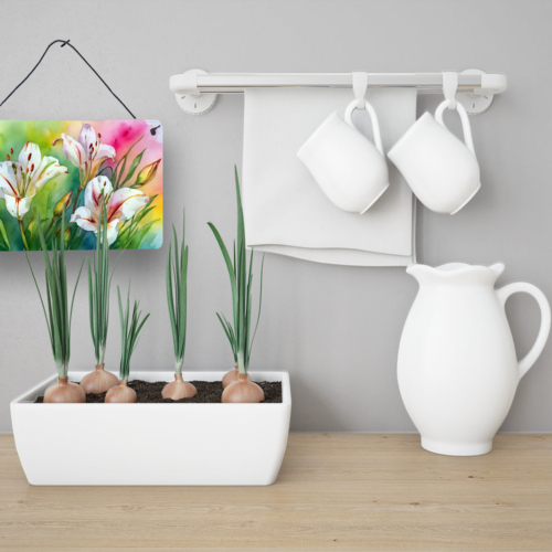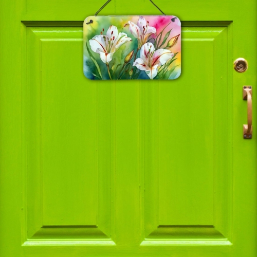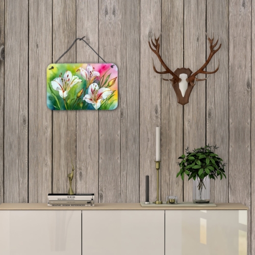 Wall or Door Hanging Prints featuring breed specific Utah Sego Lilies artwork. Add a splash of color and artistic flair to any indoor or outdoor space with our Aluminum Artwork Prints. These unique prints, featuring full-color, multicolor designs, provide a versatile decorative touch that can enhance a kitchen, bathroom, office, outdoor patio, or even the front door area. Each print measures 8 inches by 12 inches, making it the perfect size to catch the eye without overwhelming your space. Constructed with durability in mind, these prints can be placed outdoors and withstand direct sunlight for a significant amount of time before any fading begins. Designed for easy installation, each print features a black hanging rope and has a lightweight profile. This allows for quick hanging with just about any nail or screw. For safety and aesthetic appeal, the print’s corners are gently rounded. The back of the print showcases a brushed silver color for an added touch of elegance. Rust and fade-resistant, these Aluminum Artwork Prints are not only beautiful but are also built to last. Elevate your space with these stunning prints, crafted with care and artistic passion.