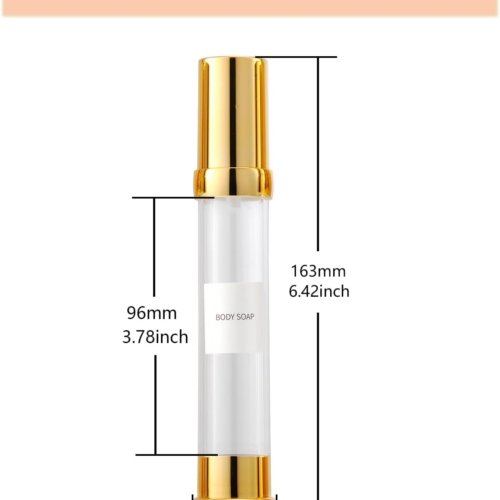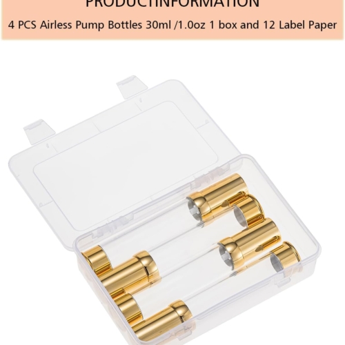 Noble Appearance & High Quality: This travel airless pump bottles, is composed of exquisite gold and transparent colors. can be reused It can be used for lotion, hair oil, toner, liquid foundation, hand sanitizer, etc.Excellent outdoor solution: Compact size, diameter 1.02 inches, height 6.42 inches, 1.7oz30ML, comes with gift box packaging, 12 labels, and 1 funnel, making travel pump bottles easy to carry. This is the TSA travel size packaging containerAirless technology: The use of vacuum suction technology without straws has outstanding advantages in ensuring that your products are not contaminated by bacteria and are not affected by air exchange oxidation, allowing your products to be stored for longer periods of time.Multiple Leak Proof & Waste Reduction: The pump bottle is designed to be multiple leak-proof, protecting your luggage and clothing. The unique design allows you to use up the last drop in the bottle pump dispenser, reducing waste.