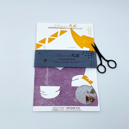 Construct multiple: messages and images with a Constructanote! You need only your hands and a pair of scissors. Each toy is letterpressed on recycled paper and is packaged in a biodegradable clear sleeve.