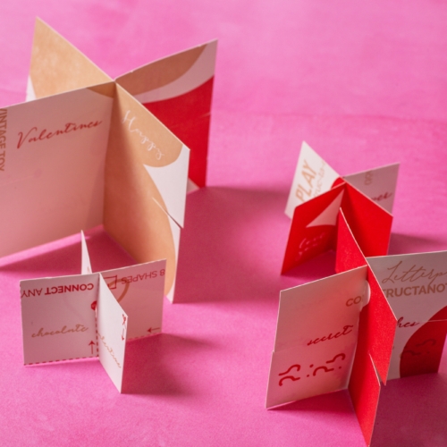 Construct multiple: messages and images with a Constructanote! You need only your hands and a pair of scissors. Each toy is letterpressed on recycled paper and is packaged in a biodegradable clear sleeve.