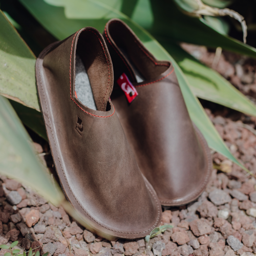 Insole in felt 4mm and exterior in 100% greased cow leather. 2mm thick leather very comfortable and flexible.