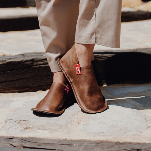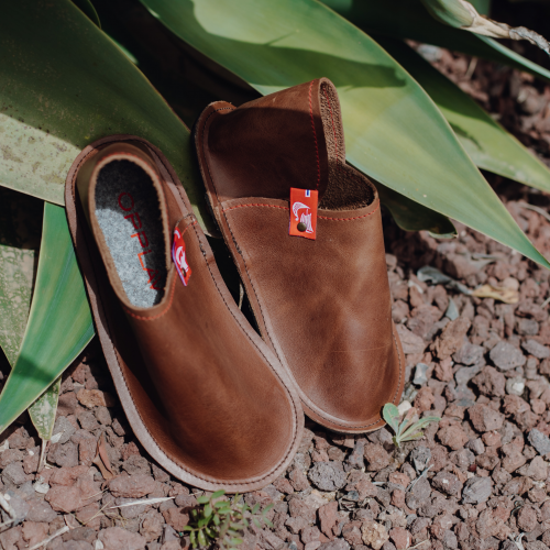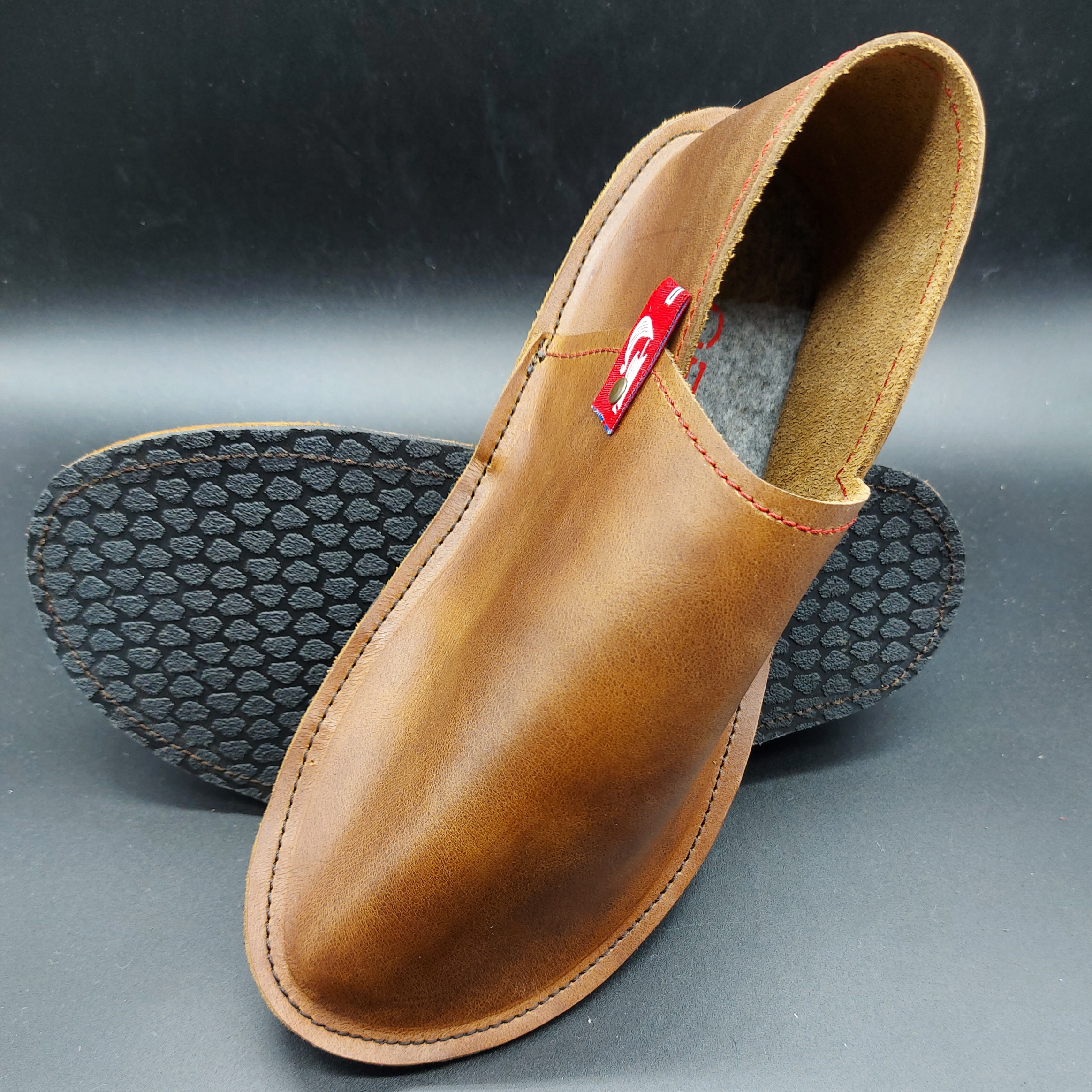 Insole in felt 4mm and exterior in 100% greased cow leather. 2mm thick leather very comfortable and flexible.