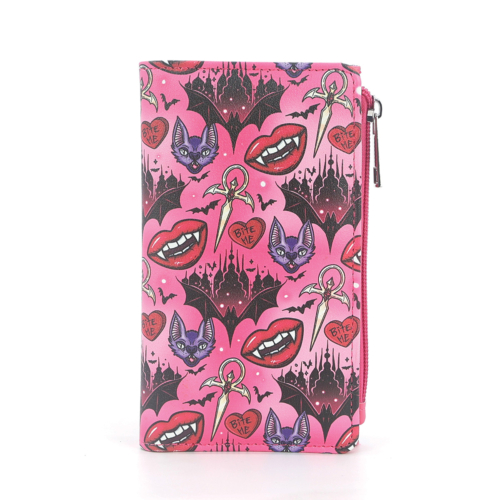 Brighten up your accessory lineup with the Vampire Bat Wallet! This playful wallet combines a bold color and eclectic collage of gothic theme icons. It’s the perfect statement piece for customers who love quirky, otherworldly designs.