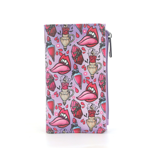 Brighten up your accessory lineup with the Vampire Tongue Wallet! This playful wallet combines a bold color and eclectic collage of gothic theme icons. It’s the perfect statement piece for customers who love quirky, otherworldly designs.