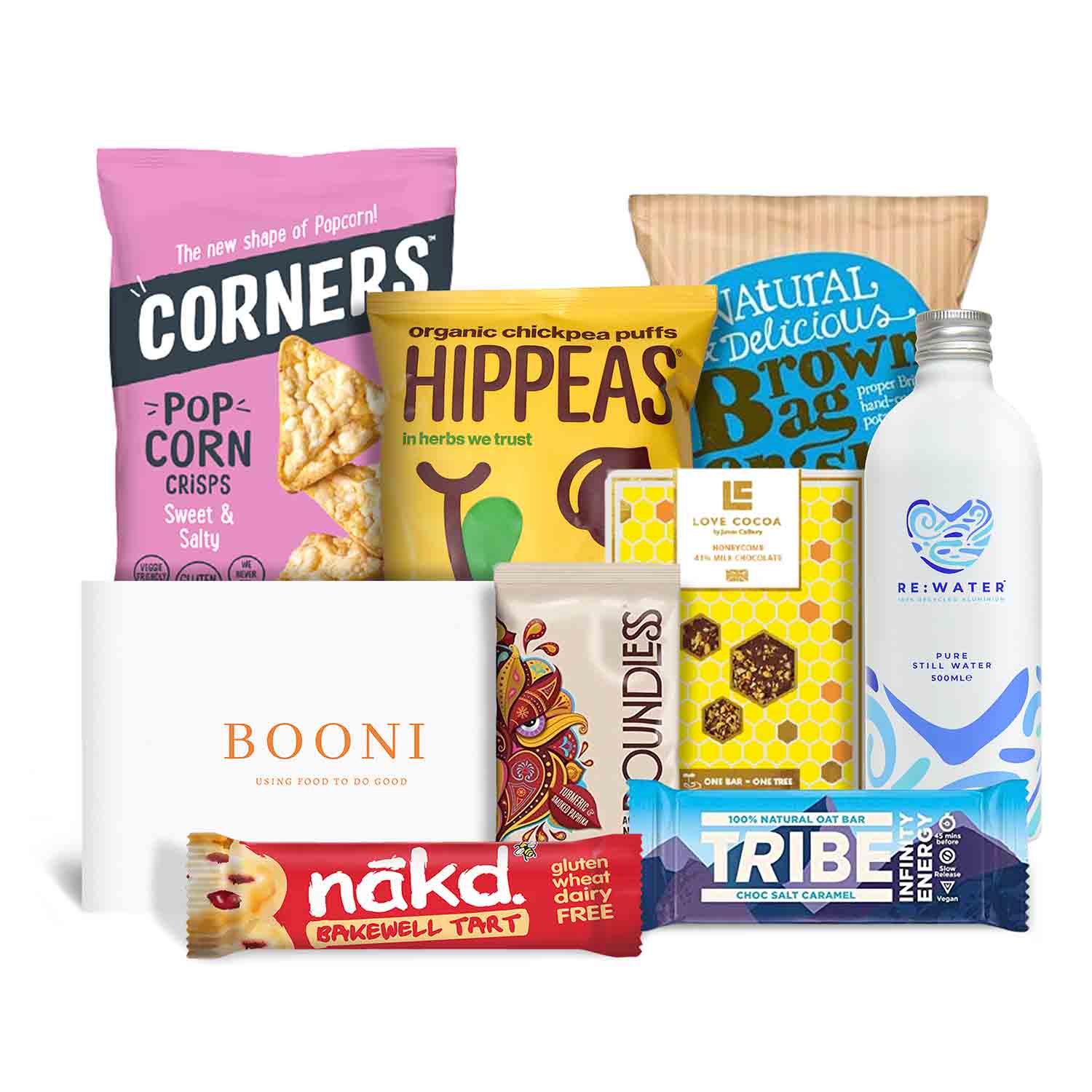 Try all the vegan bars, health snacks, recycled bottled water and more backcountry food you need for your adventures with this box. The perfect snack box with lots inside for everyone.