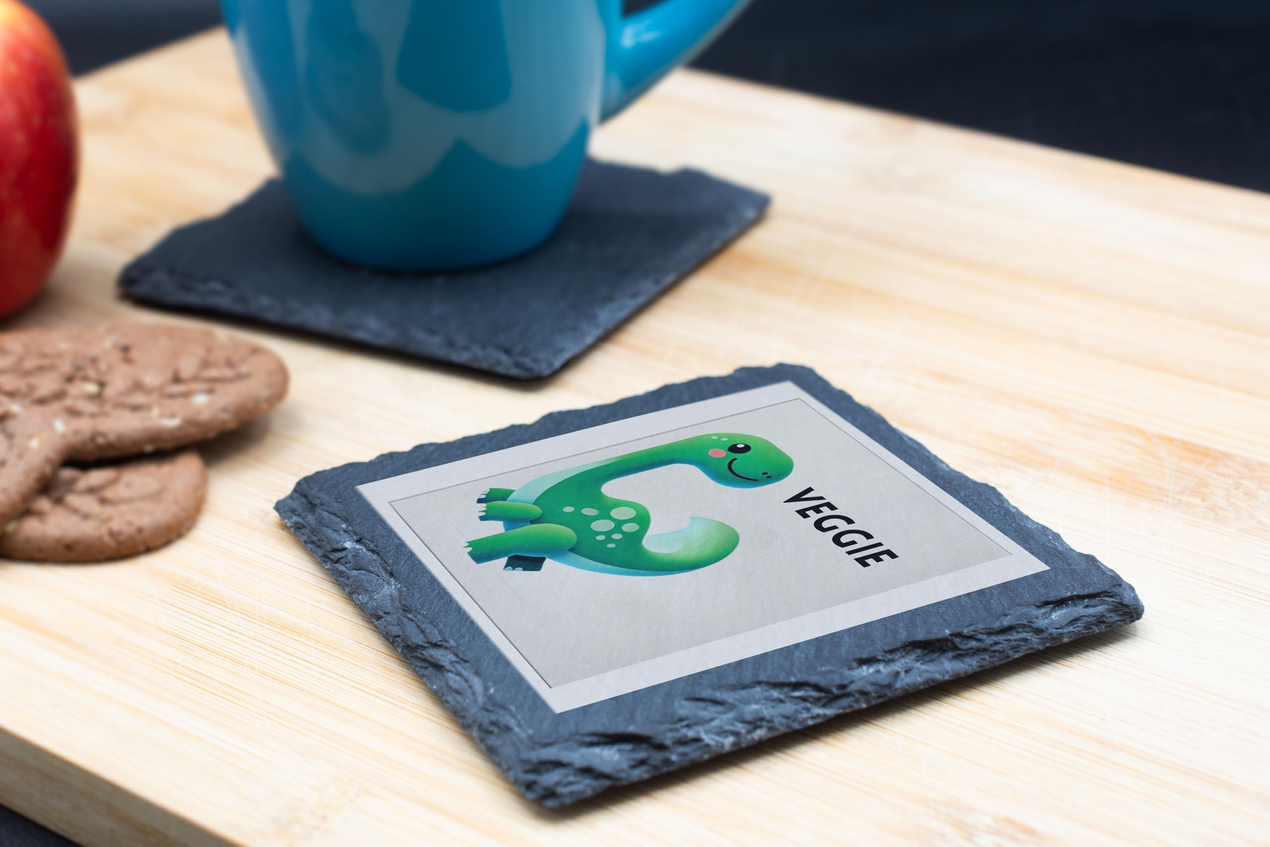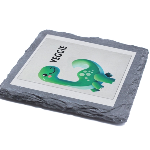 Bring charm and humor to your home with the “Veggie Dino” Slate Coaster. Featuring an adorable green dinosaur and the word “VEGGIE,” this coaster celebrates the plant-based lifestyle with a playful twist. Crafted from premium slate, it offers a sturdy and durable solution for protecting your surfaces from spills and scratches while providing a touch of personality. Whether you’re a proud herbivore or a fan of dinosaurs, this coaster is a delightful way to showcase your interests. Perfect as a gift for vegans, vegetarians, or anyone who appreciates cute and quirky designs, the “Veggie Dino” Slate Coaster is a unique addition to any table setting. Adorable Dino Design: Features a charming green dinosaur with the text “VEGGIE,” perfect for plant-based or herbivore lovers. Durable Slate Material: Crafted from high-quality slate with a natural, rustic finish that is both stylish and functional. Perfect for Veggie Enthusiasts: A fun addition to the home of anyone who embraces a plant-based lifestyle or loves dinosaurs. Multipurpose Use: Protects your surfaces while adding a touch of personality to your table or workspace. Unique Gift Idea: Ideal for birthdays, housewarming, or special occasions for vegans, vegetarians, or dinosaur fans.