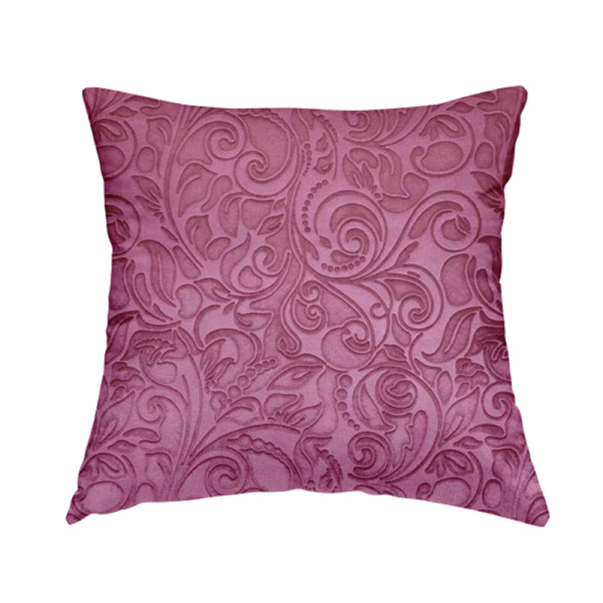 Velvet Fabric Embossed Pink Lilac Pattern Cushions Piped Finish Handmade To Order-Large