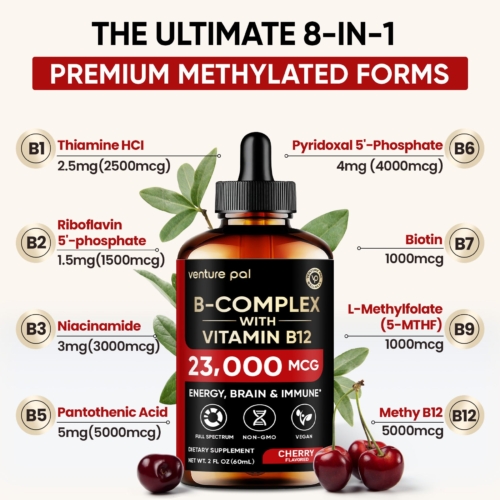Sublingual B Complex with methylated B vitamins, B12, folate, choline, and vitamin C for fast absorption. Boosts energy, metabolism, focus, mood, nerves, and immune health daily.