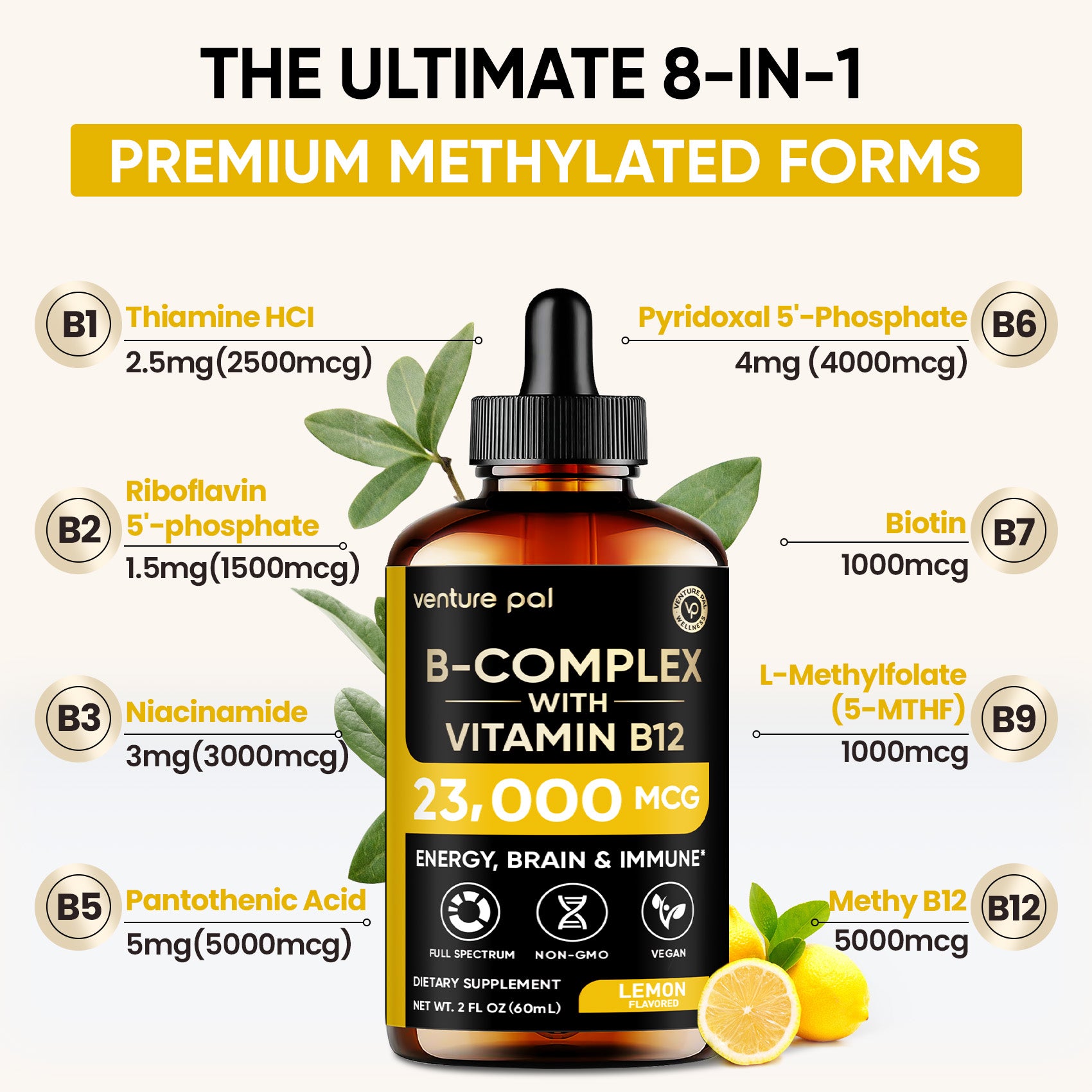 Sublingual B Complex with methylated B vitamins, B12, folate, choline, and vitamin C for fast absorption. Boosts energy, metabolism, focus, mood, nerves, and immune health daily.