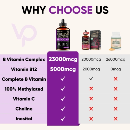 Sublingual B Complex with methylated B vitamins, B12, folate, choline, and vitamin C for fast absorption. Boosts energy, metabolism, focus, mood, nerves, and immune health daily.