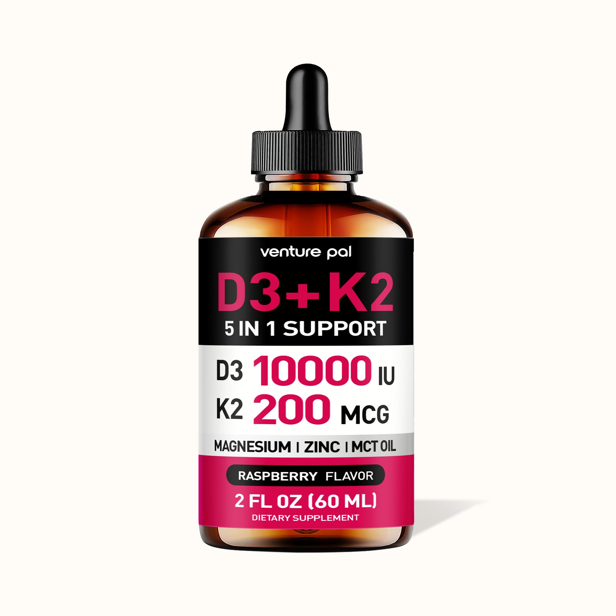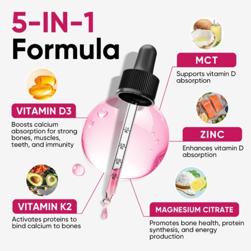 Vitamin D3 10000 IU Plus K2 (MK-7) – Raspberry Flavor – 200 mcg Liquid Drops