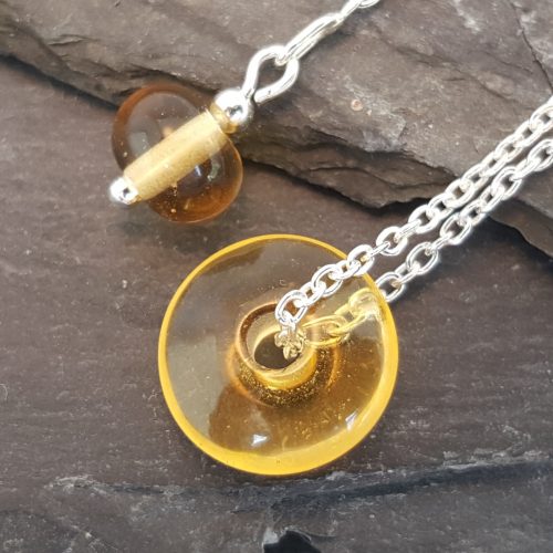 The handmade focal bead is approximately 13mm in diameter and moves freely on the chain. Each bead is individually hand made so will vary slightly from the images.