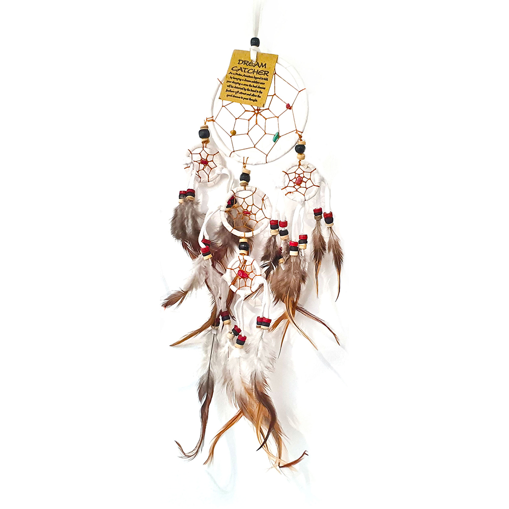 Dream Catcher is a spiritual tool used to help assure pleasant dreams to those that sleep under it. Handcrafted dream catcher featuring a 9 cm ring hand wrapped in suede cord, followed by four smaller rings. The dreamcatcher is featured with lovely beadwork. Only good dreams can pass through while bad dreams are caught in the webbing, destroyed by the first rays of the morning light.