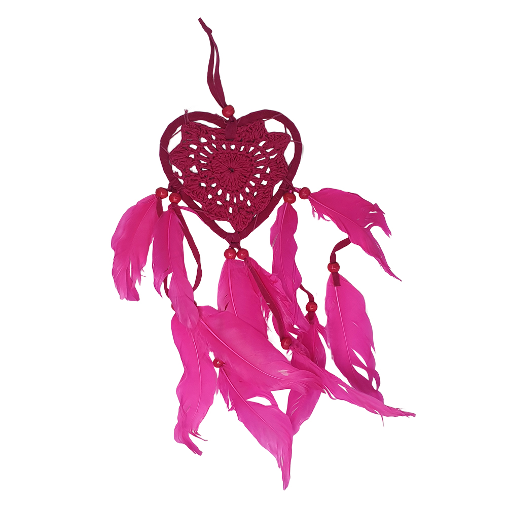Heart-Shaped Dream Catcher is a spiritual tool used to help assure pleasant dreams to those that sleep under it. This handcrafted dream catcher has a unique design, enhanced with beautiful beadwork. It features a 9 cm ring hand wrapped in suede cord. Only good dreams can pass through while the bad dreams are caught in the webbing and destroyed by the first rays of the morning light.
