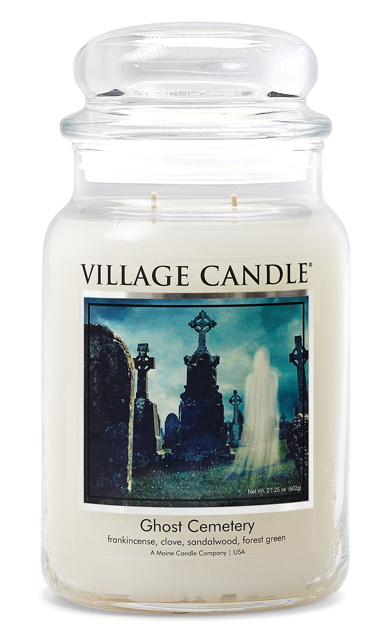 FRANKINCENSE • CLOVE • SANDALWOOD • FOREST GREEN Spend a chilly and haunting evening in the midst of a foggy grey cemetery where ghouls, ghosts and spirits of the night linger and watch from above. This mysterious scent both frightens and brings comfort to the air. High-quality fragrance and food-grade paraffin wax for a clean, even burn. Lead-free hand-trimmed cotton wicks Large Apothecary is 3.8”L 3.8”W 7”H and provides up to 170 hours of fragrance release Fragrance Notes: Top: Incense, Cinnamon, Fir, Needles, Elemi, Black Pepper Mid: Coconut, Clove, Coffee Base: Tonka, Vanilla, White Musk, Sandalwood, Cedarwood, Patchouli