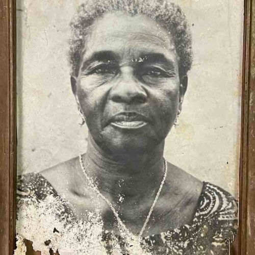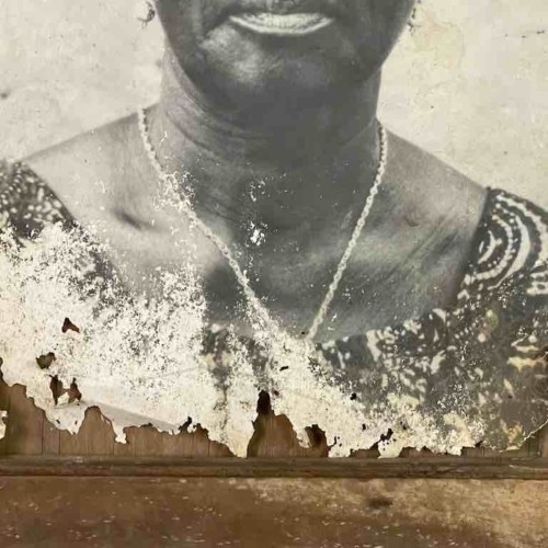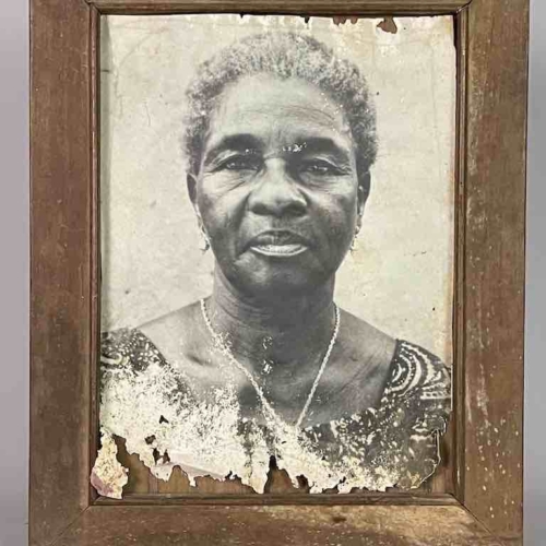 The merchant from whom I bought this old African photo could not identify the woman but clearly the photograph had been taken a long time ago and was not preserved under the best conditions so the photograph is somewhat deteriorated. The overall dimensions are 19 3/4 x 15 3/4″ (50 x 40 cm) The photo itself is 15 3/8 x 11 1/4″ (39 x 29 cm)