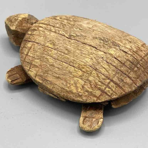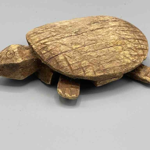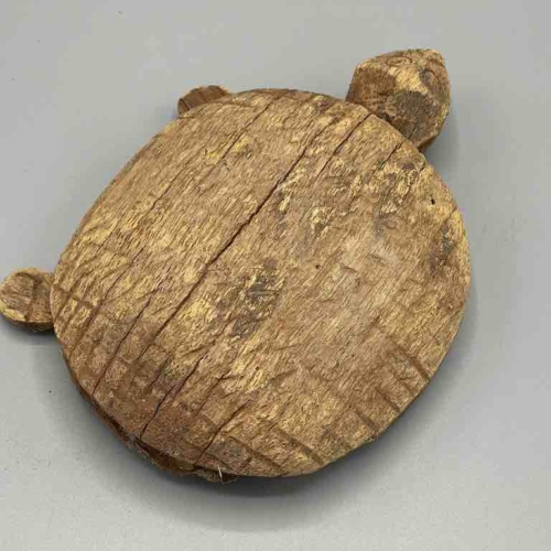 Most Africans have a strong sense of spirituality and their own connection with the environment. They celebrate and worship this spirituality through small shrines in their homes in which they incorporate objects that represent aspects of that relationship that are very personal to them, their family and their ancestry. The turtle always represents persistence and continuity. This turtle figure was actually part of one of those shrines in someone’s home in Mali for a very long time. 5 1/4 x 3 3/4 x 1 1/4″ (13 x 10 x 3 cm)