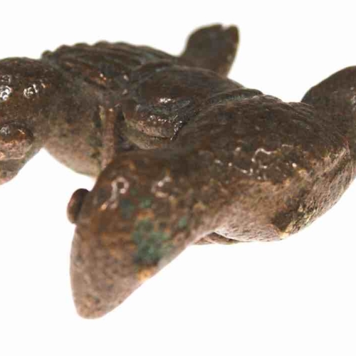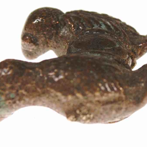 This very, very old double bird figure is very typical of the Bamana people and employs the lost wax brass casting technique typical among many African peoples. It’s copper content is relatively high as evidenced by its dark copper color It measures:1 1/4 x 1 1/8 x 1/2″ (3 x 3 x 1.3 cm)