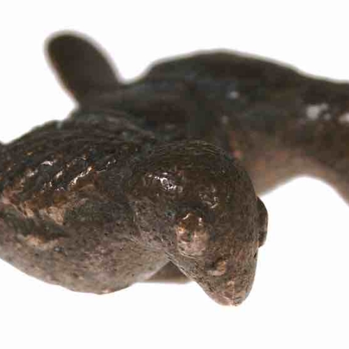 This very, very old double bird figure is very typical of the Bamana people and employs the lost wax brass casting technique typical among many African peoples. It’s copper content is relatively high as evidenced by its dark copper color It measures:1 1/4 x 1 1/8 x 1/2″ (3 x 3 x 1.3 cm)
