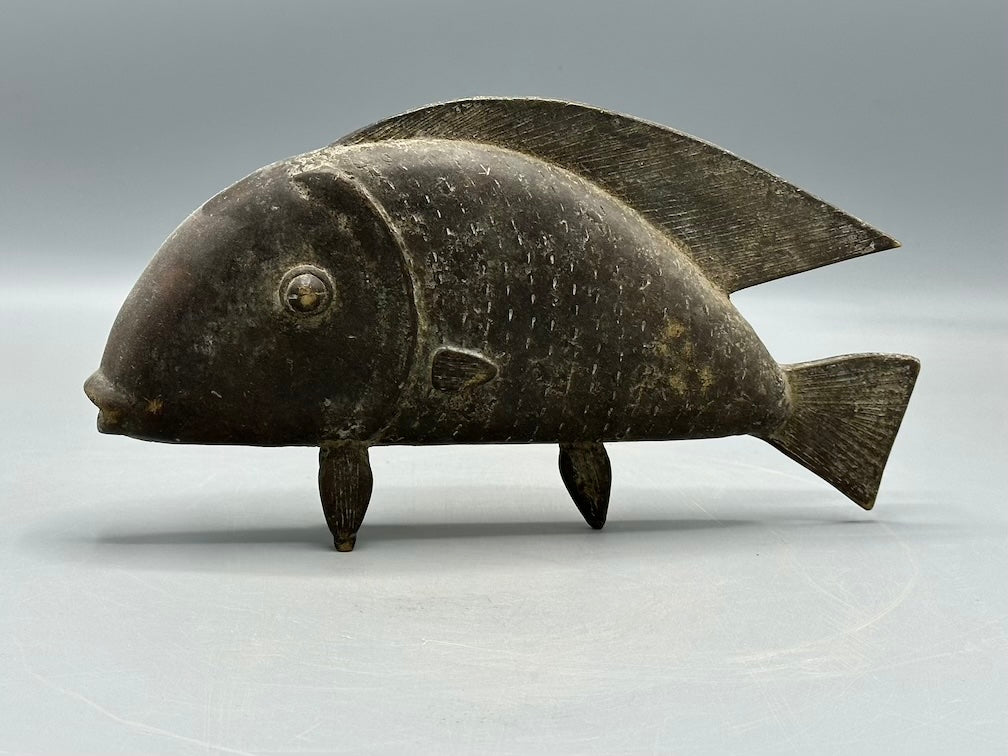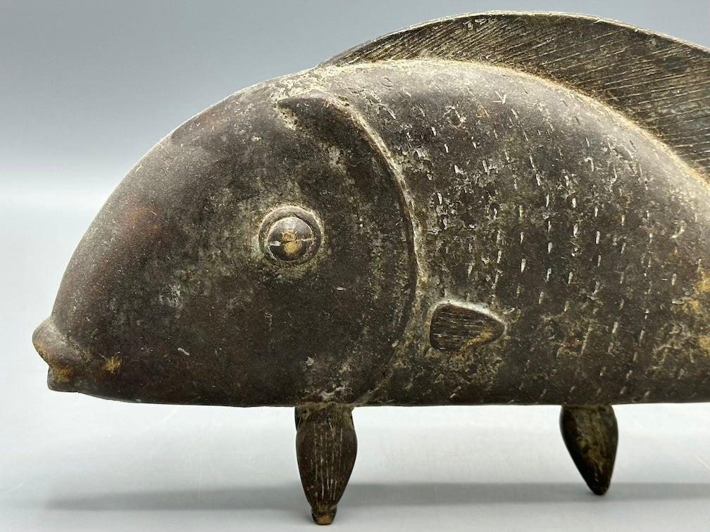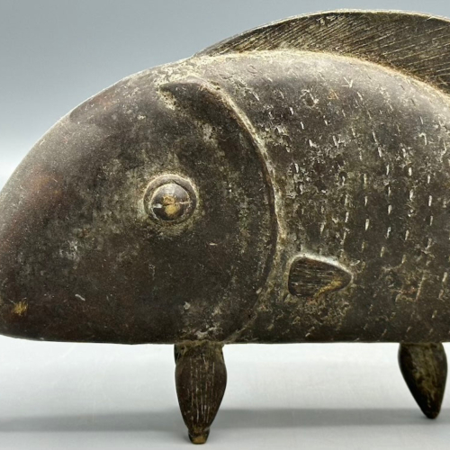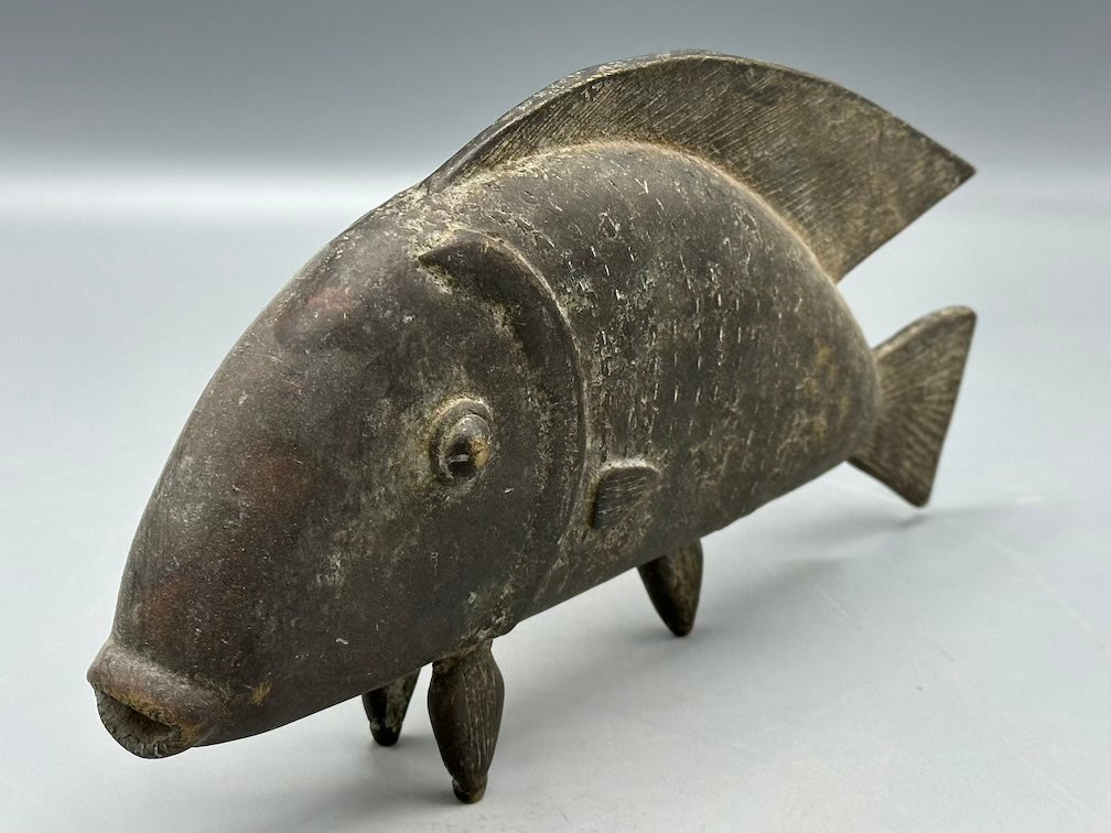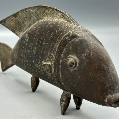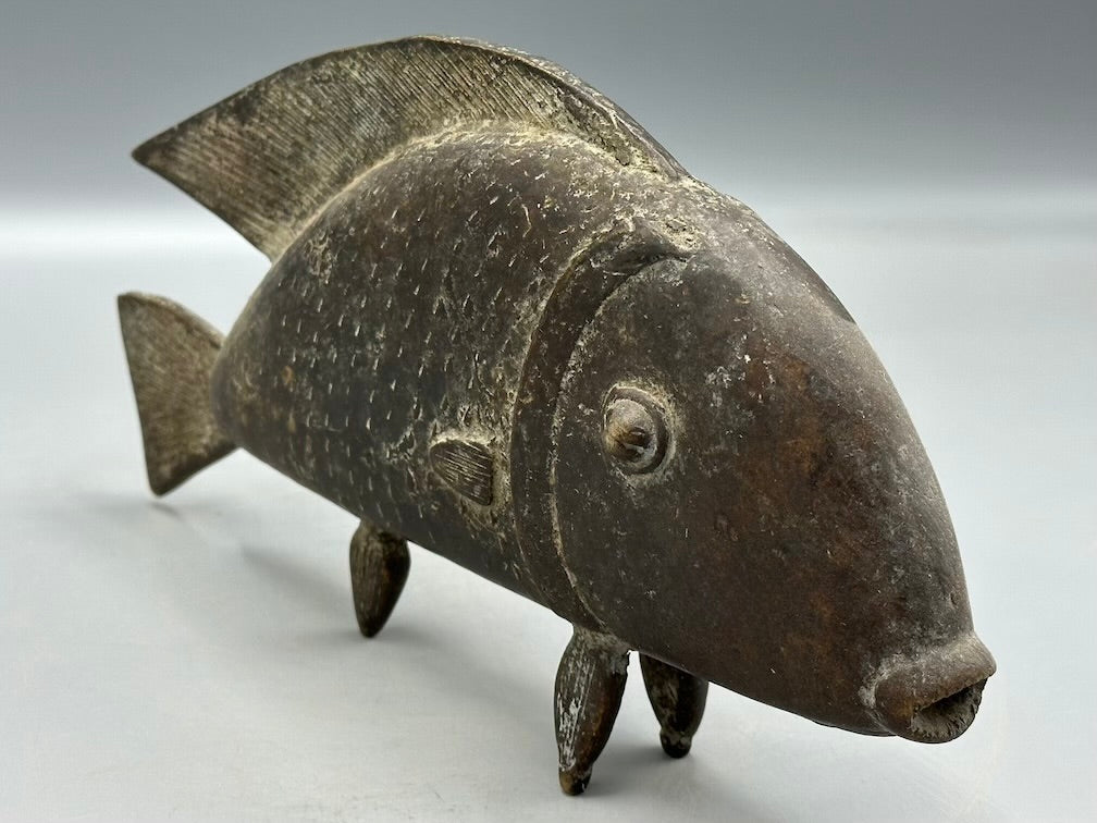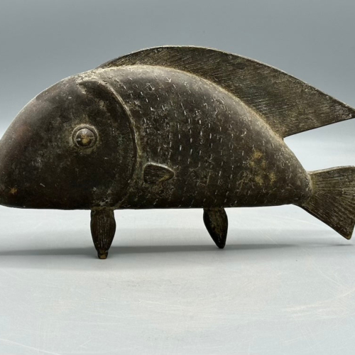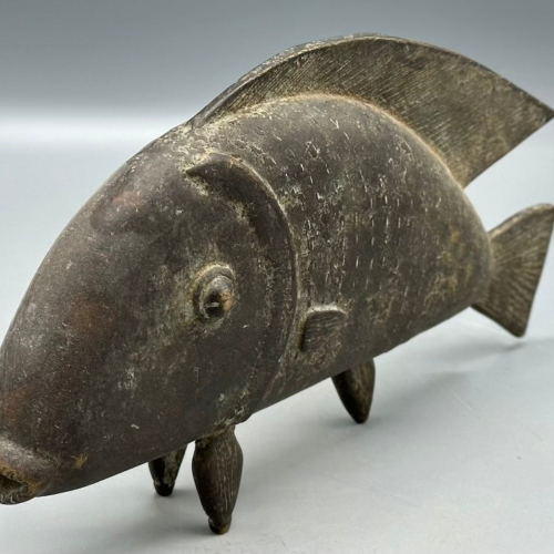 This beautiful and perfectly cast fish figure is very typical of the Baule people and employs the lost wax brass casting technique typical among many African peoples. It measures:10 1/4 x 5 3/8 x 1 1/5″ (26 x 13.5 x 3.8 cm