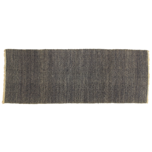 Although the majority of the population of modern Vietnam is ethnic Vietnamese there are many tribes of other ethnicities, each with its own language and culture, completely separate from the Vietnamese cultural majority. One of those ethnic minorities, as they are called in Vietnam is the Tay. A subgroup of the Tay are the “Black Tay”, residing in the mountains of Northern Vietnam. Their signature handwoven blanket, is used for warmth during the rainy season, the winter, of Vietnam, where temperatures can get well below freezing. Their textiles are most commonly recognized by their diamond shaped patterns. With a stunning central woven panel of natural black and white cotton, consisting of two bands each roughly 13″ wide. Many blankets in their full form will have a border around the central panel to increase its size. Sometimes the border may be removed before selling, or replaced with a newer border when the previous one gets old. The approximate age is over 40 years, which is sometimes quite evident by patches of fading color or repairs of different colored threads. This blanket measures 44″ x 16″