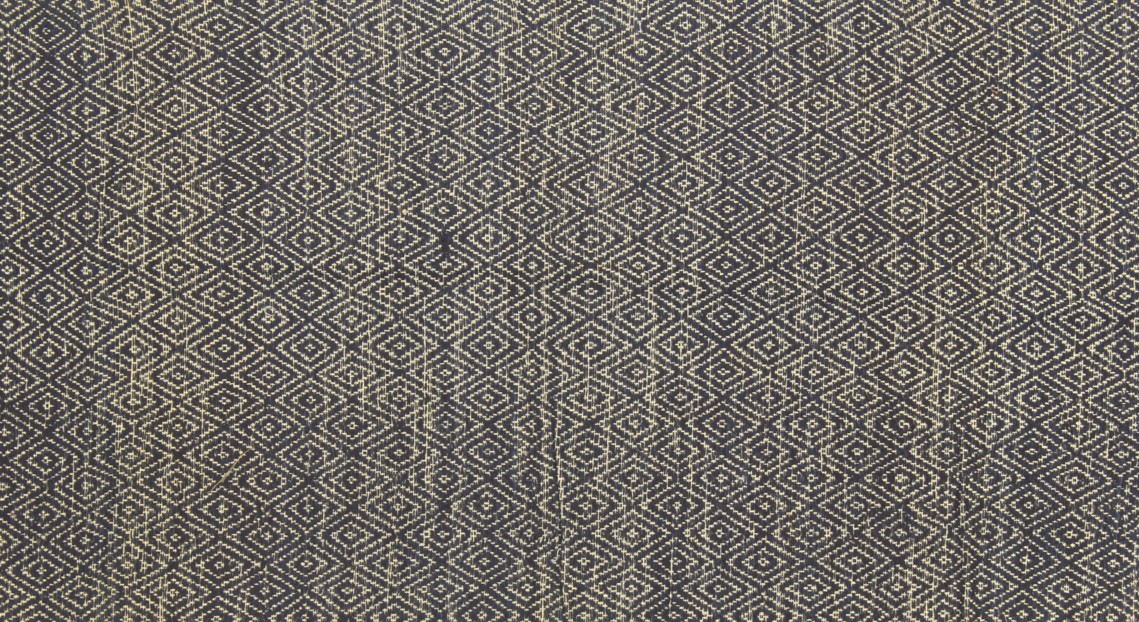 Although the majority of the population of modern Vietnam is ethnic Vietnamese there are many tribes of other ethnicities, each with its own language and culture, completely separate from the Vietnamese cultural majority. One of those ethnic minorities, as they are called in Vietnam is the Tay. A subgroup of the Tay are the “Black Tay”, residing in the mountains of Northern Vietnam. Their signature handwoven blanket, is used for warmth during the rainy season, the winter, of Vietnam, where temperatures can get well below freezing. Their textiles are most commonly recognized by their diamond shaped patterns. With a stunning central woven panel of natural black and white cotton, consisting of two bands each roughly 13″ wide. Many blankets in their full form will have a border around the central panel to increase its size. Sometimes the border may be removed before selling, or replaced with a newer border when the previous one gets old. The approximate age is over 40 years, which is sometimes quite evident by patches of fading color or repairs of different colored threads. This blanket measures 44″ x 16″