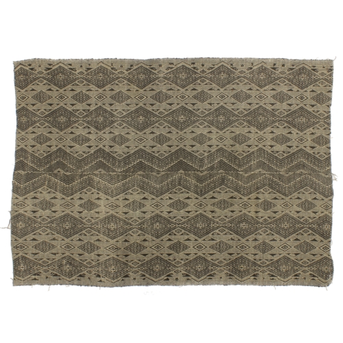 Although the majority of the population of modern Vietnam is ethnic Vietnamese there are many tribes of other ethnicities, each with its own language and culture, completely separate from the Vietnamese cultural majority. One of those ethnic minorities, as they are called in Vietnam is the Tay. A subgroup of the Tay are the “Black Tay”, residing in the mountains of Northern Vietnam. Their signature handwoven blanket, is used for warmth during the rainy season, the winter, of Vietnam, where temperatures can get well below freezing. Their textiles are most commonly recognized by their diamond shaped patterns. With a stunning central woven panel of natural black and white cotton, consisting of two bands each roughly 13″ wide. Many blankets in their full form will have a border around the central panel to increase its size. Sometimes the border may be removed before selling, or replaced with a newer border when the previous one gets old. The approximate age is over 40 years, which is sometimes quite evident by patches of fading color or repairs of different colored threads. This blanket measures 44″ x 31″