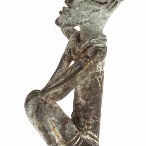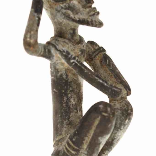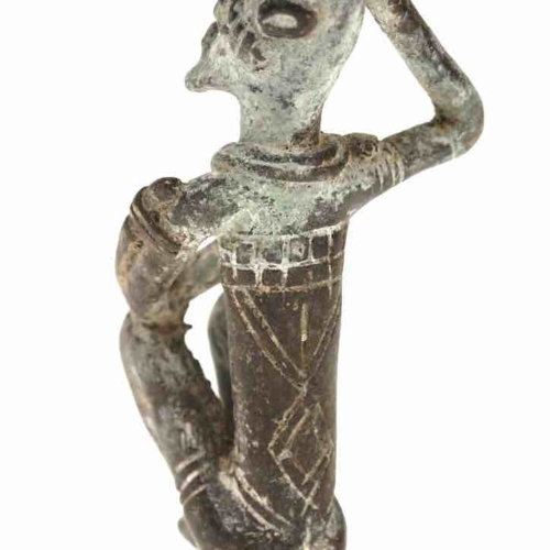 This male figure is very typical of the Dogon people and employs the lost wax brass casting technique typical among many African peoples. It measures:2 5/8 x 1 3/8 x 1 7/8″ (7 x 3.5 x 5 cm)